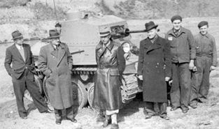 образца Praga LTL-H. В кожаном плаще в центре стоит