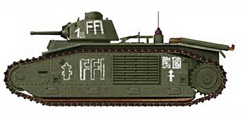 В 1944г. союзники захватили во Франции некоторое количество танков В1bis, которые передали силам «Свободной Франции» (или «Сражающейся Франции»). Чтобы отличать свою технику от немецкой, танкисты «Свободной Франции» красили машины в оливково-зелёный цвет и наносили на танки такие же белые звёзды, как на американской и английской технике. Так как французская милиция (ополчение) была включена в состав армии де Голля, то на некоторых танках появились буквы FFI (Forces Françaises de l'Intérieur – французские внутренние силы). (Рис.26)