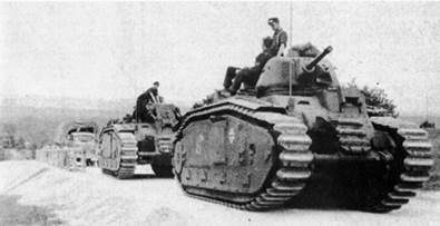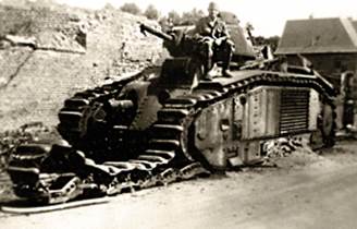 В первые недели боев 2-я бронетанковая дивизия практически не существовала в качестве единого войскового соединения. Танки бросались в бой отдельными подразделениями, по мере прибытия в район боевых действий. Так, 15 мая 1940 года танки В1 bis 8-го батальона получили задачу отбросить немецкие танки, прорвавшиеся в районе Марль-Моккорне. К 11 часам утра 16 мая после ночного марша французские танки остались без горючего. К 13.30 они прибыли в Берларкур, где удалось заправиться только к 17.30, так как на все машины нашелся всего... один ручной насос. Ночью машины двинулись дальше, но, не имея карт, потеряли и дорогу, и друг друга. Утром 17 мая несколько танков наткнулись на немецкие войска и были подбиты, а несколько машин экипажам пришлось бросить из-за отсутствия горючего. (Рис.18)