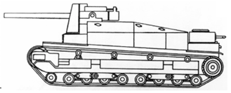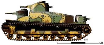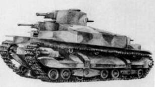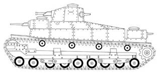 передней башне 37-мм орудие; в кормовой башне 6,5-мм пулемет. Танк был оснащен 6-цилиндровым