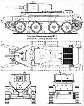 Компоновка, проекции и общий вид БТ-5.