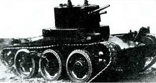 Пишут, в частности М. Свирин, что еще в конце 1931г. зам. нач. УММ Лебедев поставил перед КБ Дыренкова следующую задачу: «Вам поручается приспособить Т-26 для передвижения на колесах своим собственным ходом». Видимо, Дыренков практически не приступал к выполнению этого поручения – никаких фактических сведений о выполнении КБ Дыренкова проекта Т-26 на «колесном ходу» нет. К идее вернулись осенью 1932г. – такая работа была предложена слушателям ВАММ. Согласно требованиям, предполагалось при возможно более полном сохранении шасси, корпуса и вооружения Т-26 установить колесно-гусеничный ход. Слушатели ВАММ под руководством М. Данченко и В. Степаниц представили, как будто, три возможных решения, на основании которых весной 1933г. НПО ВАММ начал разработку колесно-гусеничного варианта Т-26. К маю 1933г. проект танка, получившего индекс КТ-26 (т.е. колесный Т-26) и его ходовой макет (т.е. реальное шасси с ходовой частью, но с «фанерным» корпусом, башней и макетами вооружения; в данном случае корпус, возможно, был железным, но не бронированным) были представлены в УММ. (Рис.1)
