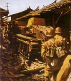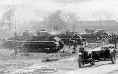 Более достоверной смотрится информация о применении танков Renault NC27 (Renault Otsu-Gata) месяц спустя (в феврале 1932г.) у Шанхая, куда была переброшена 2-ая отдельная танковая рота под командованием капитана Шигеми или Сигеми (Shigemi), оснащенная пятью танками Тип 89 и десятью NC (- если допустить, что в 1 роте также были танки NC-27, то состав танков во 2-ой роте мог выглядеть наоборот – 10 танков Тип 89 и 5 машин NC-27, впрочем, некоторые пишут, что танков в рое было поровну – 10 Тип 89 и 10 NC-27). Бои в городских условиях показали полную непригодность танков Renault в сражениях подобного рода (Рис.8), в то время как танки японской постройки весьма эффективно проявили себя.