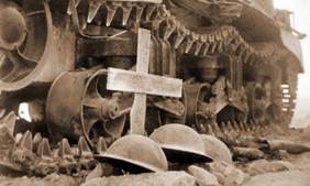 Рис.49 – Повреждения ходовой части. На переднем плане крест, как печальное напоминание о погибших британских танкистах.