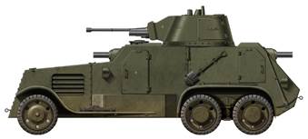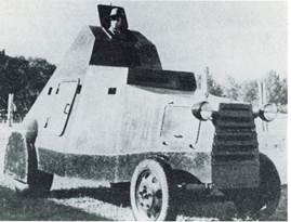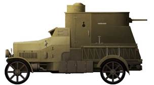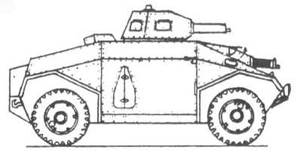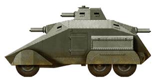 Рис.3 – БА Ehrhardt Potkachel. Масса 8,3 т. Бронирование 6-12 мм. Вооружение 37-мм пушка и один-два пулемета 6.5 mm Lewis M.20. Экипаж 4 чел. Мощность двигателя 80 л.с. Максимальная скорость 50 км/ч.