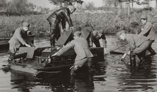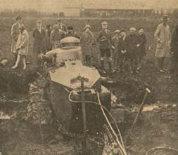 Первая публичная демонстрация состоялась 12 апреля 1928 года. Выбранной площадкой был торфяной польдер (peat polder) за дворцом Хейс-тен-Бос (Huis Ten Bosch Palace) в Гааге. Главной задачей танка было пересечь ров шириной примерно 1,4 метра. Танк провалил испытание, рухнув в грязь. Машину пришлось выкапывать. (Рис.7)
