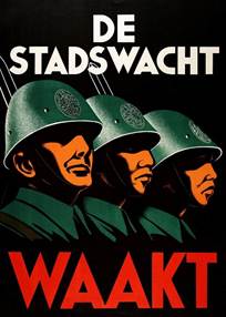 Рис.112 – Плакат 1941г. «Городская стража наблюдает» - с началом войны в Ост-Индии стихийно организовывались Комитеты городской и сельской стражи в помощь KNIL.