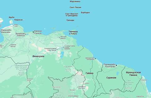 Рис.125 – Локация Суринама, островов Аруба и Кюрасао.
