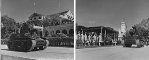 В мае 1942г. в Суринаме сформировали танковый батальон (Bataljon Vechtwagens). Личный состав батальона прошел обучение в США. Батальон включили в состав Смешанной моторизованной бригады, в состав которой, помимо танкового батальона, входили отряд морской пехоты численностью около восьмидесяти человек и отряда из бригады принцессы Ирены численностью 225 человек, прибывшего из Британии. (Рис.127)