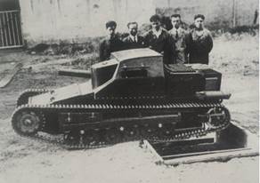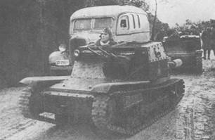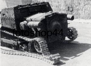 Рис.62 – Не исключено, что перед нами искомый L.3 trattore leggero (в оригинале под фото подпись: “Moto Guzzi”). Как видим, машина потеряла вооружение и полную бронировку боевого отделения.