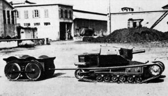 На базе CV33 испытывался вариант танкетки-мостоукладчика L.3 Zappatori, второе название - CV33 Passerella. Вооружение при этом демонтировалось, а на корпусе крепилась ферменная конструкция с лебедками, механизмом укладки и непосредственно мостом длиной 7 метров. (Рис.64)