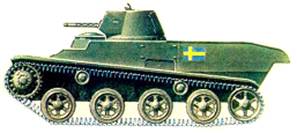 Вооружение - 2 пулемета винтовочного калибра. 85-сильный двигатель Volvo DC. Ходовая часть с торсионной подвеской. Машина разгонялась до 50 км/ч.