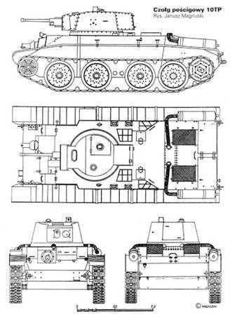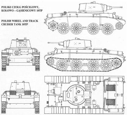 В образованном в конце 1934г. проектном заведении BBT Br.Panc (Biurze Badaс Technicznych Broni Pancernych) обратились и к заделу по теме колесно-гусеничного танка “A la Christie”, снятого под кальку с танка Кристи. (Рис.1)