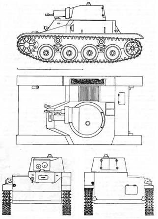 прародителя – британский экспортный малый танк типа Vickers Light Tank. Экипаж, состоявший из двух человек (командира и