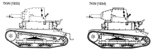 В 1933г. на базе ТК-3 создали вариант башенного сверхлегкого танка – TKW (Рис.1), W – «wieża», башня.