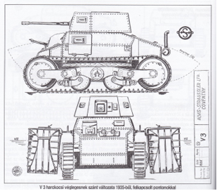 В Британии у Шраусслера не было возможности добиться государственного заказа на выполнение своей задумки, однако на родине он поддерживал контакты с влиятельной семьей Вейс. Непосредственная политическая и финансовая поддержка компании Manfred Weiss позволила компании Штраусслера (“Straussler Mechanization Ltd.”) в 1933г. получить заказ от венгерского правительства на разработку и изготовление танка, получившего обозначение V/3 (vontato – трактор).
