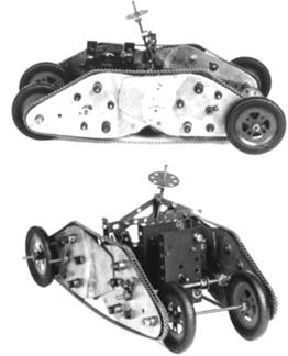 силой мотора опускалась вниз, и танк становился на гусеницы. Задние колеса при