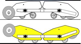 экипаж крепил к задней оси задние колеса, затем балка с тележками поднималось,