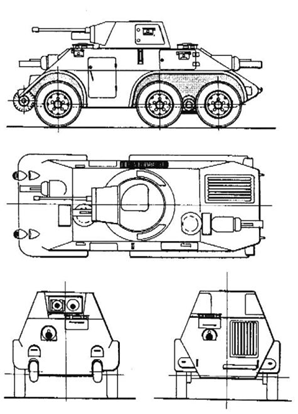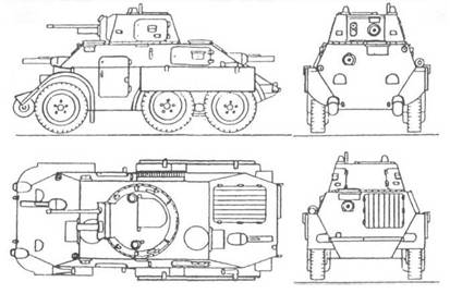 Вооружение: 37-мм пушка Bofors в башне, три пулемета Lewis калибра 7,92 мм -