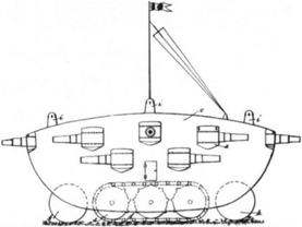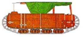 Проект бронированной вооруженной машины на движителе, использовавшем две пары синхронно перемещающихся лыж. |