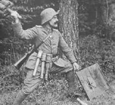 Рис.1 – Германский пехотинец времен Первой мировой войны со связкой гранат.