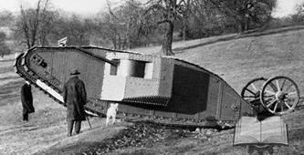 26 января 1916г. «Большого Вилли» тайно доставили по железной дороге с завода в Линкольне на специальную экспериментальную площадку, на которой воспроизводились детали разбитого поля боя: траншеи, проволочные заграждения, воронки от снарядов. (Рис.9)