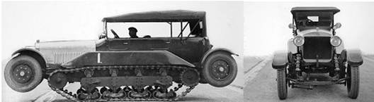 местности на гусеницах. Для первого опыта взяли легковой автомобиль Wolseley и дополнительно снабдили его гусеничным движителем