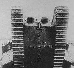 На танках Mark III впервые опробовали балку самовытаскивания. Поначалу это были два 2-метровых торпедообразных деревянных бруса, крепившихся на крыше. Если гусеницы начинали буксовать, их тормозили, кто-либо из экипажа выбирался на крышу и цепями крепил брусья к тракам гусениц. Проворачиваясь, гусеницы затягивали брус под танк, где он ложился на грунт, создавая тем самым для них опору. (Рис.2)