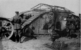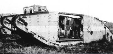 Рис.35 - Танк Mk I (СЗ), получивший попадания в район командирского люка, апрель 1917г.