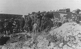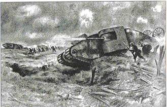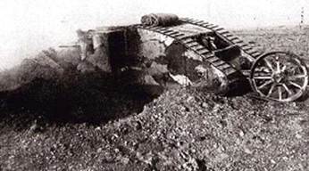 Один был сразу подбит и загорелся, два увязли (Рис.34), но смогли открыть огонь из орудий и пулеметов по намеченному укрепленному пункту, 400 немцев почти тотчас сдались в плен - в германской армии поселилась «танкобоязнь».