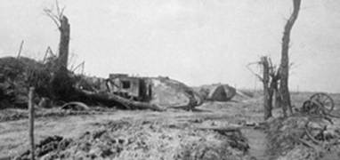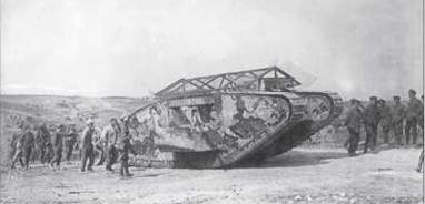 Рис.36 – Подбитый британский Mark I female, второе сражение при Газе, 17 апреля 1917г.