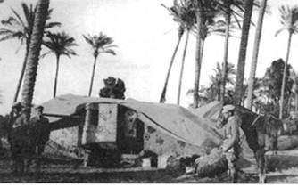 В декабре 1916 года отряд из 8 танков Mk I (машины лишили хвоста) из роты Е под командой майора Нэта отправили морем в Египет. Отряду придавалась мастерская. Численность личного состава отряда маора Нэта насчитывала 22 офицера и 226 нижних чинов. В январе 1917г. отряд выгрузился в Египте. (Рис.35)