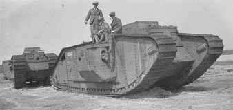 Рис.2 – Heavy Tank Mk V**, вверху 2 «самца» 1918г., внизу «самка», современный вид.