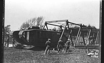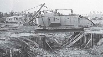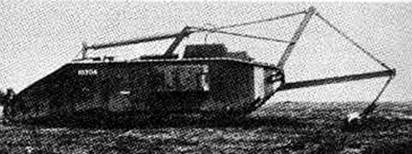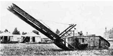 Заметим, что первоначально предлагался другой вариант мостового танка – танк с мостом на крыше должен был спускаться в ров или широкий окоп. Малая жесткость корпусов ромбовидных танков не позволила реализовать этот проект, хотя к самой идее возвращались позже неоднократно.