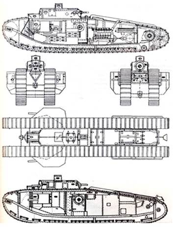 Самым мощным серийным ромбовидным танком, разработанным в конце войны, признан англо-американский Mk VIII (Рис.1).