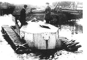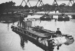 На воде танк показал скорость до 5 км/ч, но запас его плавучести оказался ничтожным. Даже при небольшом волнении преодоление водных препятствий на этой машине становилось опасным занятием, а для входа и выхода танка из воды требовалось пологое и твердое дно. (Рис.7)