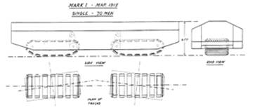 Осенью 1915г. начались испытания слегка переработанного опытного образца Pedrial Landship. Для облегчения преодоления препятствий спереди и сзади были установлены нижние барабаны, но это не спасло положения. По сути, это была экспериментальная платформа с передним постом управления, очень опосредованно относившаяся к боевой машине. В процессе испытаний на неё было установлено некое подобие корпуса, закрытого тентом, под которым могло свободно разместиться человек 20 (Рис.3).