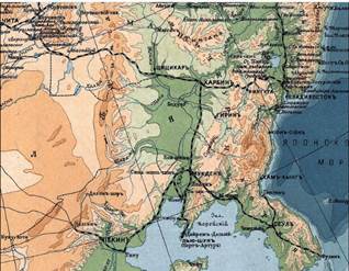 Китайско-Восточная железная дорога (КВЖД) была построена русскими в 1897-1903гг., как южная ветка Транссибирской магистрали – соединяла Читу с Владивостоком (через Харбин) и Порт-Артуром, причем дорога проходила за рубежом русской территории - по Манчжурии (Рис.623)