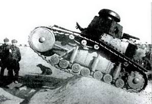 В 1924г. французы тестировали опытные танки типа Char de bataille (образцы с 47-мм и 75-мм орудиями). Одним из результатов этих испытаний стало изменение спецификации к предъявленному типу – танк теперь мыслился еще более тяжело бронированным и, следовательно, менее подвижным - масса 19-22 тонны при увеличении толщины брони до 40 мм. В 1926г. требования к Char de Bataille снова изменились. Теперь отмечалось, что в обязанности «боевых танков» входила, преимущественно, поддержка пехоты. (Рис.565)