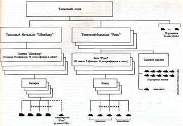 Известно, что к концу войны помимо 9 танковых полков смешанного состава (средние танки штурмовой артиллерии и легкие танки) (Рис.629) было сформировано 27 легкотанковых батальона по 72 боевых танка «Рено» и 3 «радиотанка».