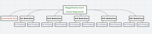 22 полка легких танков, отдельный батальон легких танков и 1 полк тяжелых танков были организованы в 7 бригад. К каждой бригаде был отнесен парк материального обеспечения. Имелся также Центральный склад материалов и Учебный танковый центр.