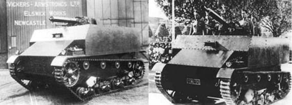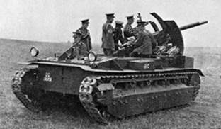 Наконец, в начале 1920-х гг., по заказу военного ведомства, была разработана серия самоходных артиллерийских установок. Работы носили экспериментальный характер, поскольку на основании полученных результатов британское командование сухопутными силами должно было решить, чему отдать предпочтение - буксируемой артиллерии или самоходным орудиям.