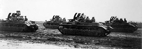 Возможно, к маневрам 1925г. подготовили два генератора дымовой завесы. На фото с этих маневров запечатлена машина с баками, установленными по левому борту ходовой части, к тому же, в отличие от RE 36A, машина сохранила вооружение. (Рис.59b)