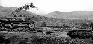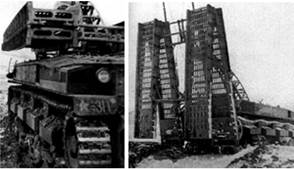 Рис.52 – Мостоукладчик на шасси Dragon Mk.I и способ наведения с него переправы.