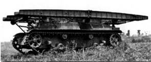 В Британии помимо тягачей и транспортеров на основе Dragon Mk.I в 1923 году был разработан проект мостоукладчика. С такой инициативой выступил майор Бейтмен (H.H.Bateman), служивший в Royal Engineers Experimental Bridging Establishment в Крайстчерче, графство Хэмпшир. Согласно его предложению, передвижной мост длиной 30 футов (9,14 м) устанавливался на роликах, крепившихся на настройке корпуса. Мост выдвигался вперед по двум стальным направляющим вперед с максимальным промежутком 28 дюймов (72 см) шириной. Построенный в том же году мостоукладчик остался в единственном экземпляре – военные посчитали неприемлемым работу его экипажа снаружи при выдвижении моста. (Рис.52)