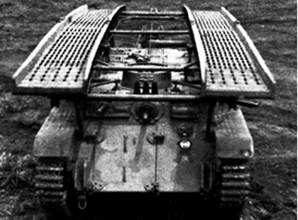 SS Otsu Gata - бронированный мостоукладчик с модифицированной ходовой частью: введены новые направляющие и ведущие колёса, по три поддерживающих ролика с каждого борта (Рис.56);