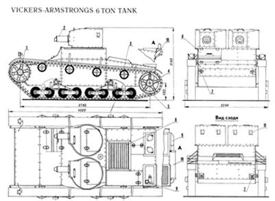 Поскольку в СССР в то время остро стоял вопрос об организации крупносерийного производства танков, то казалось, что В-26 есть походящий тип. На демонстрационном показе 8-11 января 1931 года британские танки произвели положительное впечатление на высший командный состав РККА. Окончательное решение о принятии на вооружение «6-тонного танка Виккерс типа В-26» было принято 13-го февраля 1931 года. Однако родные «виккерсы» в строевые части не поступали, а направлялись на предприятия для ознакомления или использовались для испытаний. По меньшей мере, на одной машине испытывались башни советского производства, копируемые с британского образца. А в августе 1931г. еще один танк В-26 обстреляли на полигоне. Вот описание этого момента (Михаил Свирин «Броня крепка. История советского танка 1919-1937»): «В ходе исследований отдельные детали корпуса подвергались обстрелу простой остроконечной пулей и бронебойной пулей типа АУ-30 из винтовки и пулемета «максим» с дистанции около 50 метров. Простой же остроконечной пулей обстрел велся в основном по заклепочным соединениям. Всего из винтовки было выпущено 85 простых и 30 бронебойных пуль, а из пулемета – 250 простых и 130 бронебойных. При обстреле простыми пулями в швах было выбито 3 заклепки, а также 9 заклепок оказались со срезанными и 10 – с поврежденными головками. Кроме того, 6 заклепок были расшатаны, но на боеспособность танка все это никак не повлияло. Некоторые листы корпуса после их снятия с каркаса танка были подвергнуты дополнительному усиленному обстрелу и исследованию химического состава и микроструктуры по сравнению с такими же листами Ижорского завода. В частности, отмечалось, что 13(12,7)-мм и 10(9,8)-мм броневые листы, из которых изготавливались башни и передний лист подбашенной коробки «Виккерса», были изготовлены из «цементованной брони очень хорошего качества» (по спецификации фирмы «Виккерс» – S.t.a. Plat), 5-мм листы крыши и дна были выполнены, напротив, из гомогенной брони «весьма посредственного качества выделки».