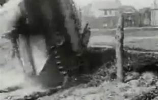 Рис.10 – Танк не может преодолеть проволочное заграждение, натянутое на столбах, и опрокидывается.