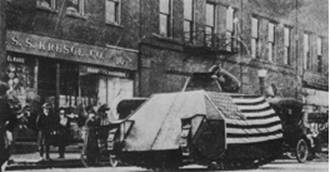 Рис.2 – Танк Гамильтона вверху на ходовых испытаниях (1918г.) и на военном параде в Окленде (1918г.).