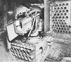 Наведение орудий по горизонту составляло в пределах 100°, что было очень приличным показателем. Боекомплект из 208 выстрелов размещался в укладке под тумбами, в нишах спонсонов и в боевом отделении под надстройкой. (Рис.12)